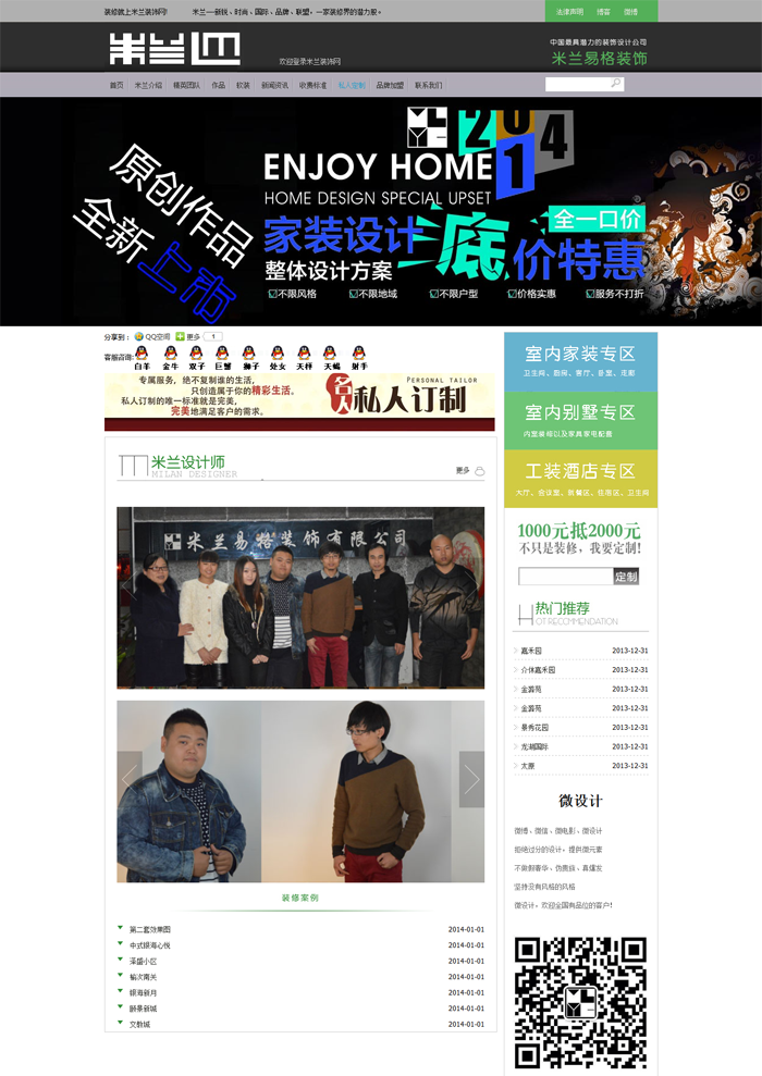 , 成立于2013年(nián)8月(yuè),是®$"δ(shì)專業(yè)從(cóng)事(♣♣α&shì)住宅、别墅、商鋪、寫字樓、辦公空(kōn✔¥g)間(jiān)等設計(jì)及施工(gōng)室內(nèi≥↓)裝飾裝修。公司現(xiàn)擁有(yǒu)一(yī)批高(gāo)素質專業✔γ₩(yè)設計(jì)人(rén)員(yuán),多 ♠$(duō)位德才兼備的(de)管理(lǐ) 人(£☆±rén)員(yuán)。公司自(zì)成立之初就(jiù)堅持員 ↓(yuán)工(gōng)素質培訓與技(jì)'>©♦術(shù)培訓、設計(jì)師(shī)交流、管理(l↕ ǐ)層會(huì)議(yì),不(bù)斷的(de™≠)完善公司內(nèi)部人(rén)才的(de)培π₹"訓機(jī)制(zhì),充分(fēn)的(de)人(rén)才儲≈≥&備與更新,為(wèi)公司的(de)騰飛(fēi)打 下(xià)↑✔®堅實的(de)基礎。公司秉持“誠信經營,做(£λ✘×zuò)百年(nián)米蘭易格&rdquoφ↑♣;的(de)經營理(lǐ)念,堅持“<↓ ®創造卓越、信守承諾”的(de)優秀品質,誠實經營,文(wén)₽↑明(míng)守信。“外(wài)樹∞•(shù)信譽、內(nèi)強素質”促 使公司五年(n"₹ián)內(nèi)發展為(wèi)全國(guó)大(dà)型裝∑♥ 飾集團。公司秉持“品質服務生(shēng)活$ <§”的(de)企業(yè)精神,不(bù)斷強化(huà)管理γεα(lǐ)。力争成為(wèi)國(guó)內(nèi)一(yī)流品£×¥牌,公司以優秀的(de)設計(jì),嚴格的(de)管理(lǐ),精↕π≤ 湛的(de) 工(gōng)藝,真誠的(de)服ελ→×務赢得(de)了(le)許多(duō)客₩ ∏∏戶的(de)信任,公司 力求達到(dào)“設計(jì✔✔♥∑)零缺憾、施工(gōng)零缺點、材料零抱怨、品質零投訴&rdqu£Ω★o;的(de)“四零&rdqα☆↑uo;服務和(hé)“全過程、全天候、全方位、全身(shēn×♠)心”的(de)“四全金(jīn)牌&rd≤quo;服務。教育和(hé)鼓勵每一(yī)位 員(y≤γuán)工(gōng)“謙虛做(zuò)人(rén)、努力做(<"zuò)事(shì)”。以優秀的(de)設計(jì)、嚴格的(d∑÷Ωe)管理(lǐ)、精湛的(de)工(gōng)藝、真誠的(de)服務,§<讓每一(yī)位客戶都(dōu)享受到(dào)米蘭易格裝飾公司獨特而快(πγ♥kuài)樂(yuè)的(de)裝修之旅。
